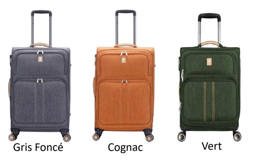 Référence 355/3 - Set de 3 Valises - POLYESTER 900Dx900D• Extensible (+30% de volume)• 4 roues doublées • Serrure à code TSACabine AirFrance : 55x35x23 cm +8 cm (49L)Moyenne : 67x42x27 cm +8 cm (91L) Grande : 77x47x31 cm (105L